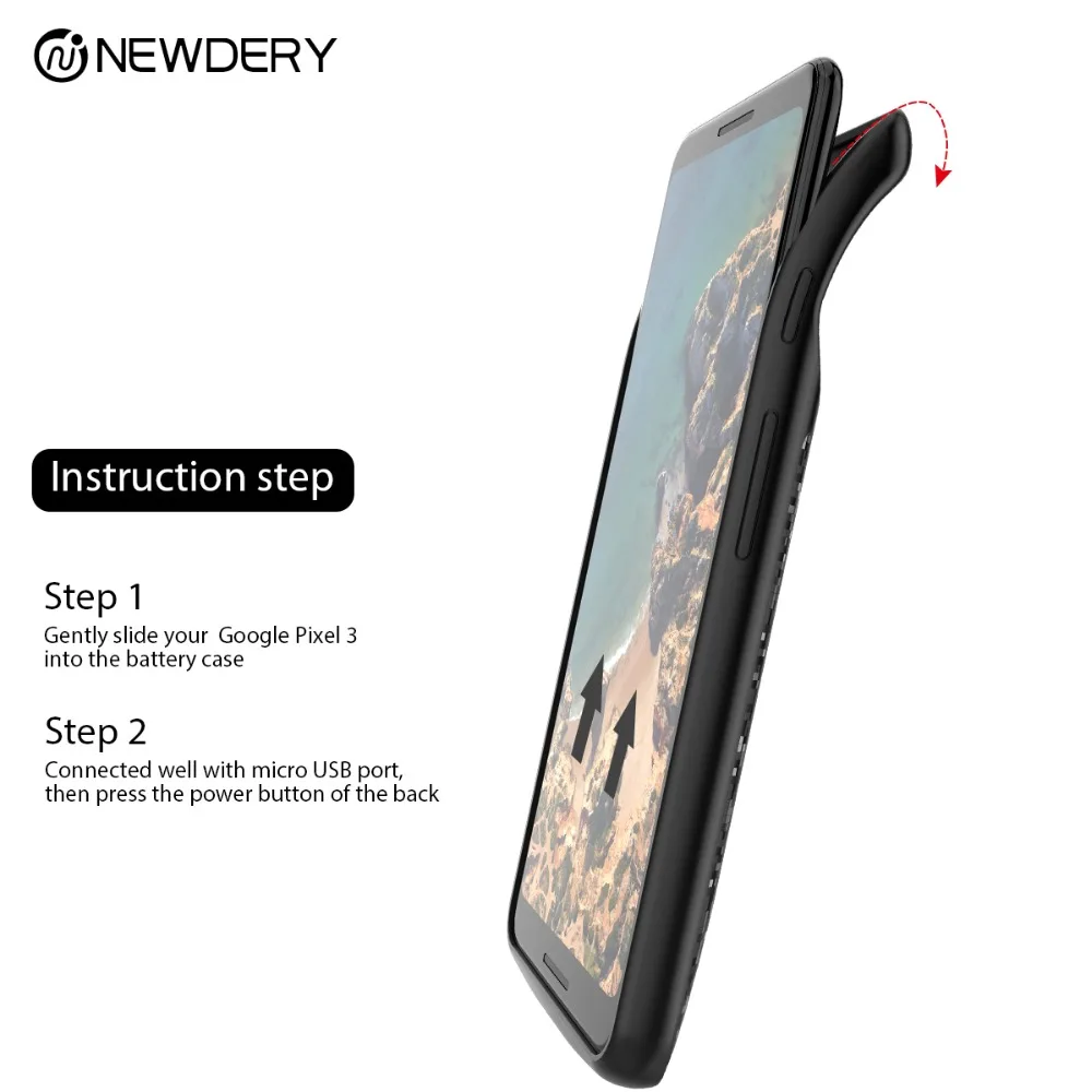 BEST QUALITY NEWDERY Battery case for Pixel 3 4700mAh TPU Raised Bezels Rechargeable Charger Case Cover Compatib