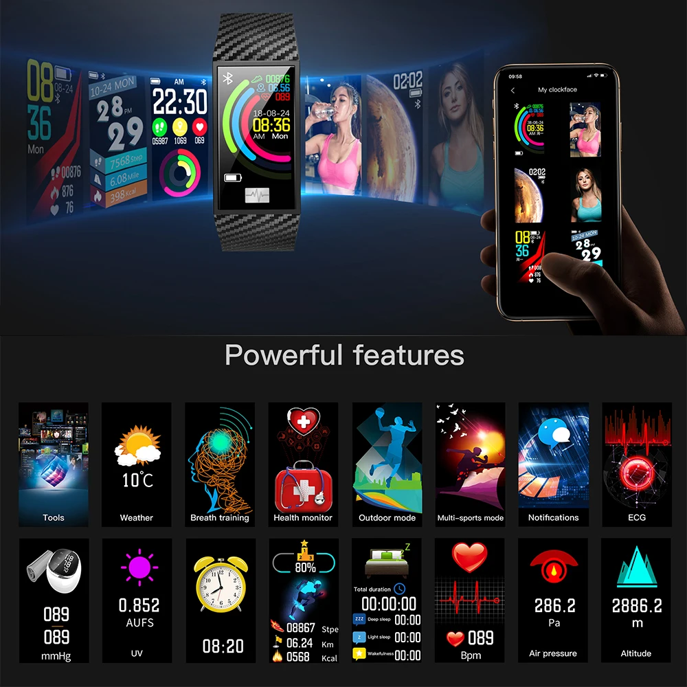TOP Yuexia Waterproof Smart Bracelet Fitness ECG Heart Rate Blood Pressure Monitor Fitness Tracker smar