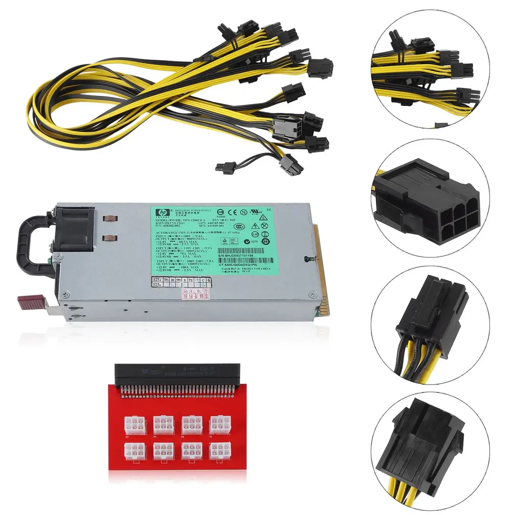 High Efficiency 1200 Watt Power Supply Kit For GPU Mining Video Card Mining 2.6 Pin PCI To 6 + 2 Pi