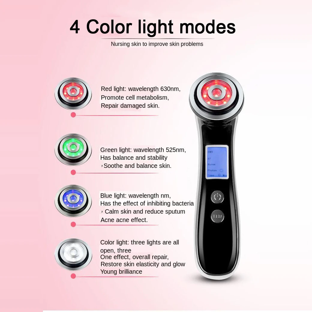 RF Ultrasonic Iontophoresi EMS Beauty Instrument LED Color Light Skin Rejuvenation Vibration Face M